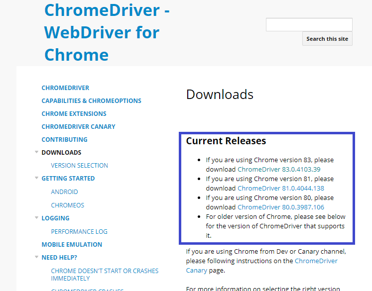 https://chromedriver.chromium.org/downloads에서 사용중인 운영체제와