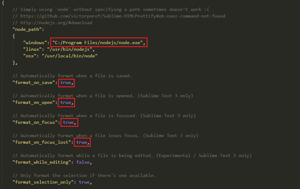 - preferences메뉴 -> Package Settings -> HTML/CSS/JS Prettify -> set 'node' Path